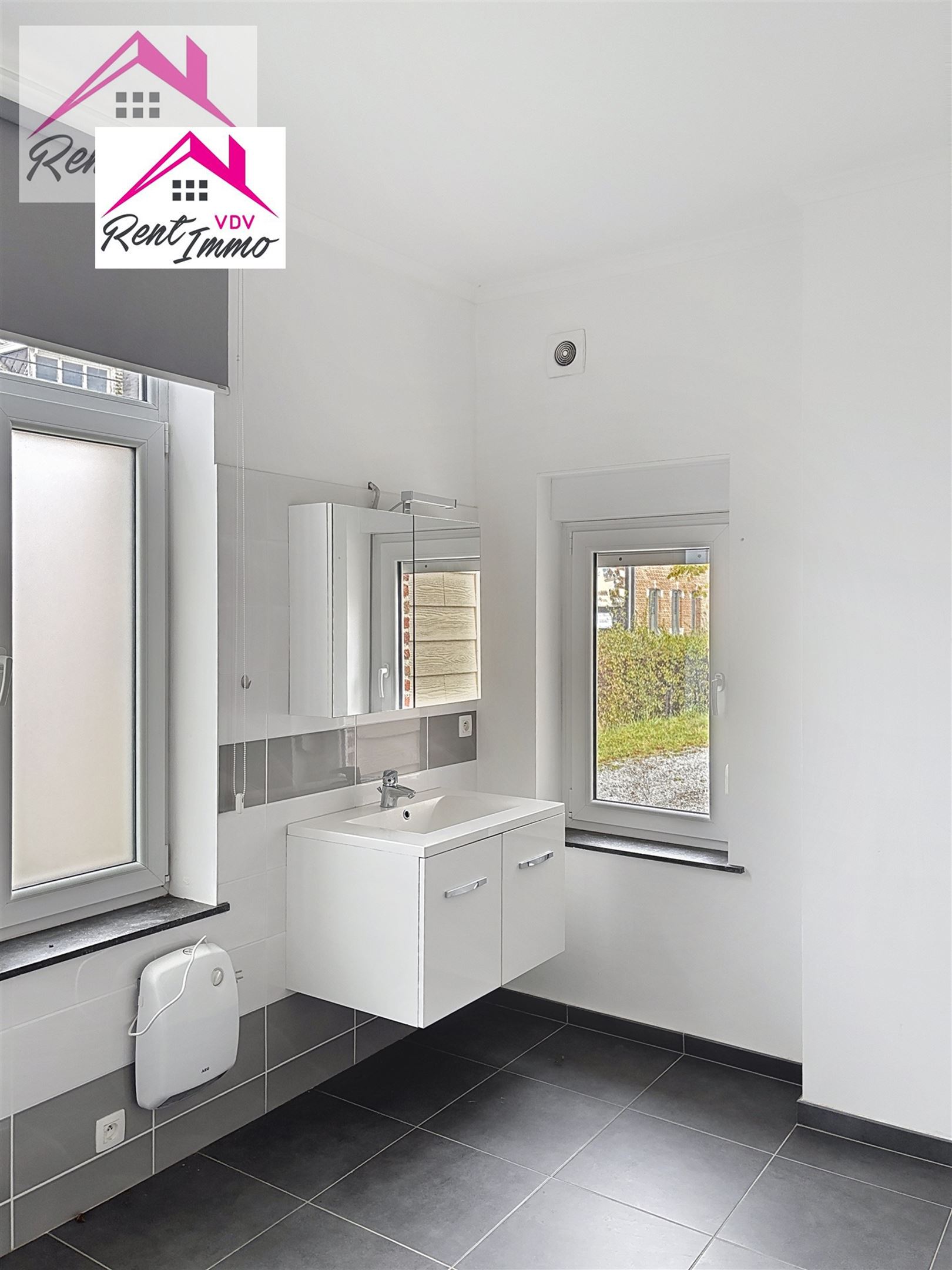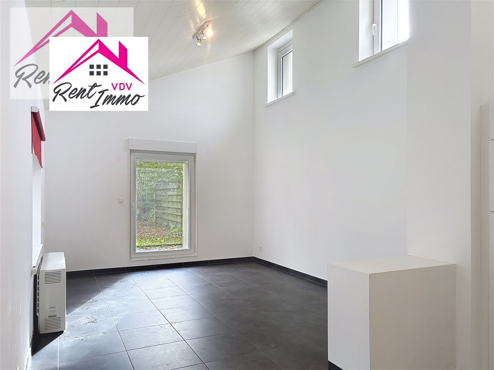 Cet appartement se compose: d'un petit hall d'entrée, d'une grande pièce à vivre avec cuisine équipée, d'une chambre à coucher, d'une salle de bain, d'un Wc séparé et d'un débarras. Au niveau extérieur: Un jardin privatif et deux emplacements parking. Pas de charges communes. Provisions pour consommation d'eau: 35€/mois en plus du loyer.